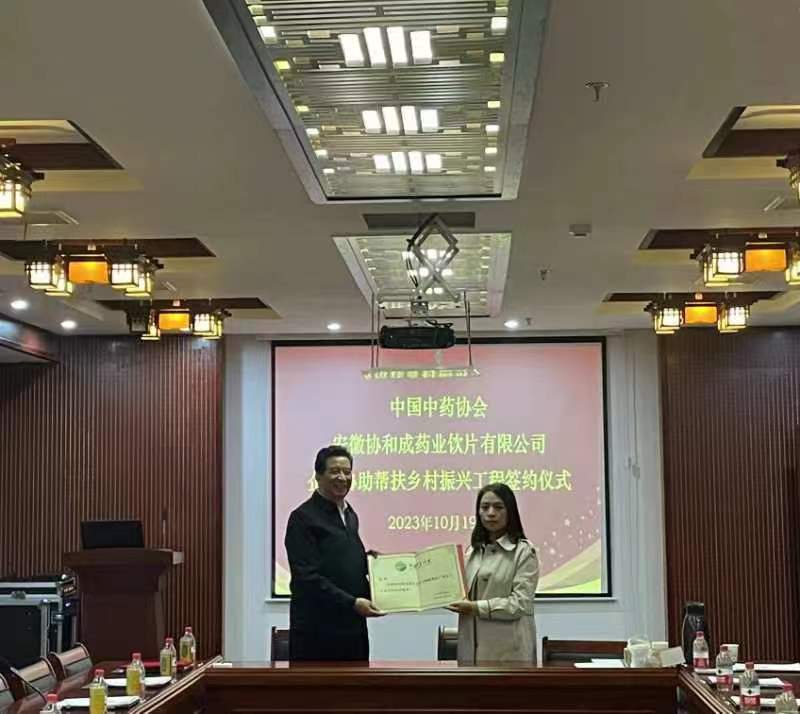 中国中药协会为协和成药业参与帮扶“广西东兰和甘肃西和”两县的乡村振兴授牌 2023年10月19日下午,丹桂飘香、秋风送爽。中国中药协会执行副会长刘张林一行莅临安徽协...